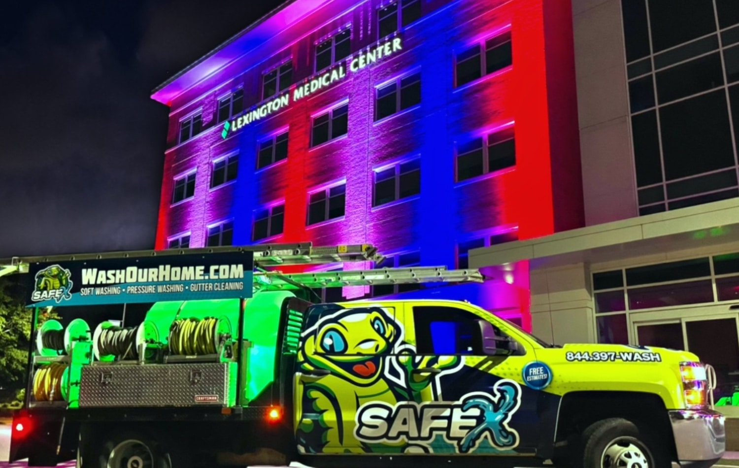 The majority of our customers own a pressure washer which is high pressure and low gpm. This method translates to taking a very, very long time for the homeowner to clean his property. In the wrong hands a pressure washer can cause extensive damage to a house. Not only that, pressure washers only remove the surface layers of mold, algae and bacteria, leaving behind spores etched into surfaces to bloom again in a short period of time. Homeowners can purchase low concentrated solutions from do it yourself stores like Home Depot or Lowes. Many times these solutions are not strong enough to get the job done right. We use commercial grade pressure washers that have multiple connection options to disperse pressure evenly for different applications on hard surfaces like concrete, non-powered brick, and wood. Typically we use soft washing equipment systems which are not available for purchase to the general public. Soft washing uses low pressure and high gpm sprayers that can reach up to 40-50 feet high. We use highly concentrated solutions and different types of commercial grade solutions for special applications such as rust removal, oil stain removal or graffiti removal. We have all the right solutions, equipment, and most importantly know how to get the job done quickly and right. After calculating money spent on machines and products plus your time, energy, and possible body damage… home owner grade machines are great for washing your car or keeping your exterior surfaces rinsed of dirt for a longer maintained clean after a pro performs an annual deep clean!